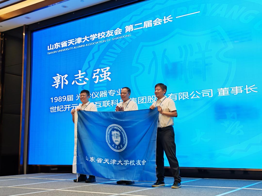 8月16日,山东省天津大学校友会第二届会员大会在济南顺利召开,世纪开元智印互联科技集团股份有限公司董事长郭志强当选为新任会长。天津大学党委书记杨贤金、党委副书记韩庆华出席会议,共同见证这一重要时刻。