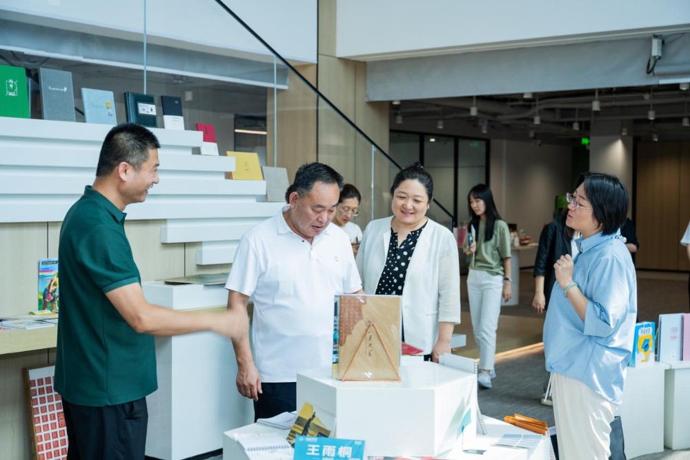 大会结束后,杨贤金、韩庆华一行在郭志强陪同下,来到世纪开元文化创意产业园区参观调研。一行人先后走进产品展厅,认真察看了各类印刷产品,郭志强详细介绍了世纪开元的核心产品体系,展现了企业在“互联网+印刷”领域的特色与优势。