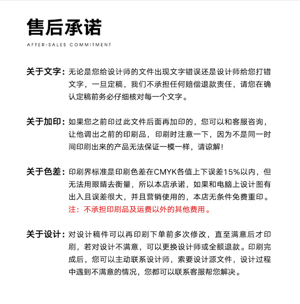 售后无忧质量问题或运输破损,无条件免费重印。