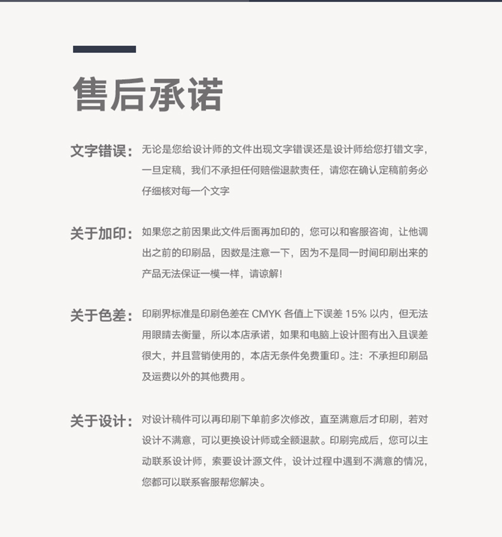 所有印刷品稿件审核无误后(24小时内),如有烫金、圆角、折页、覆膜等后道工艺每增加一道下述时效就增加一天,下述时效不含定稿当天