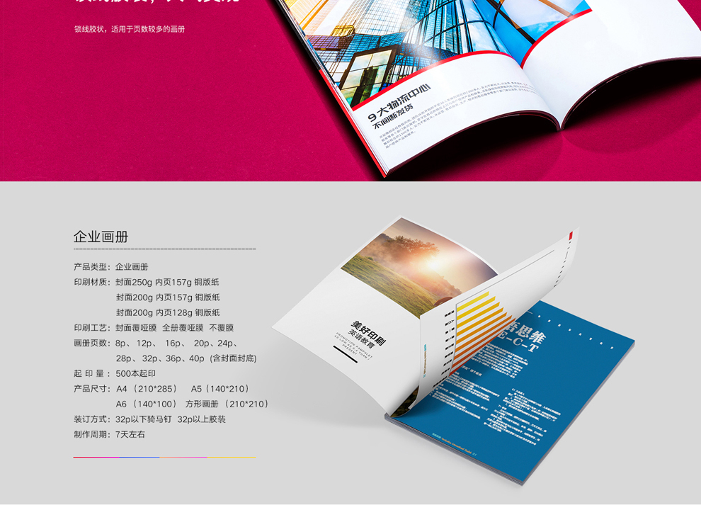 画册:骑马钉、无线胶装画册4天左右发货,锁线胶装画册6天左右发货(特殊尺寸工艺延迟1-2天)