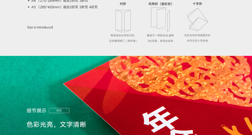 | 折页类型 | 二折页、三折页 | 印刷方式 | 自有稿件、在线自主设计、设计服务 |