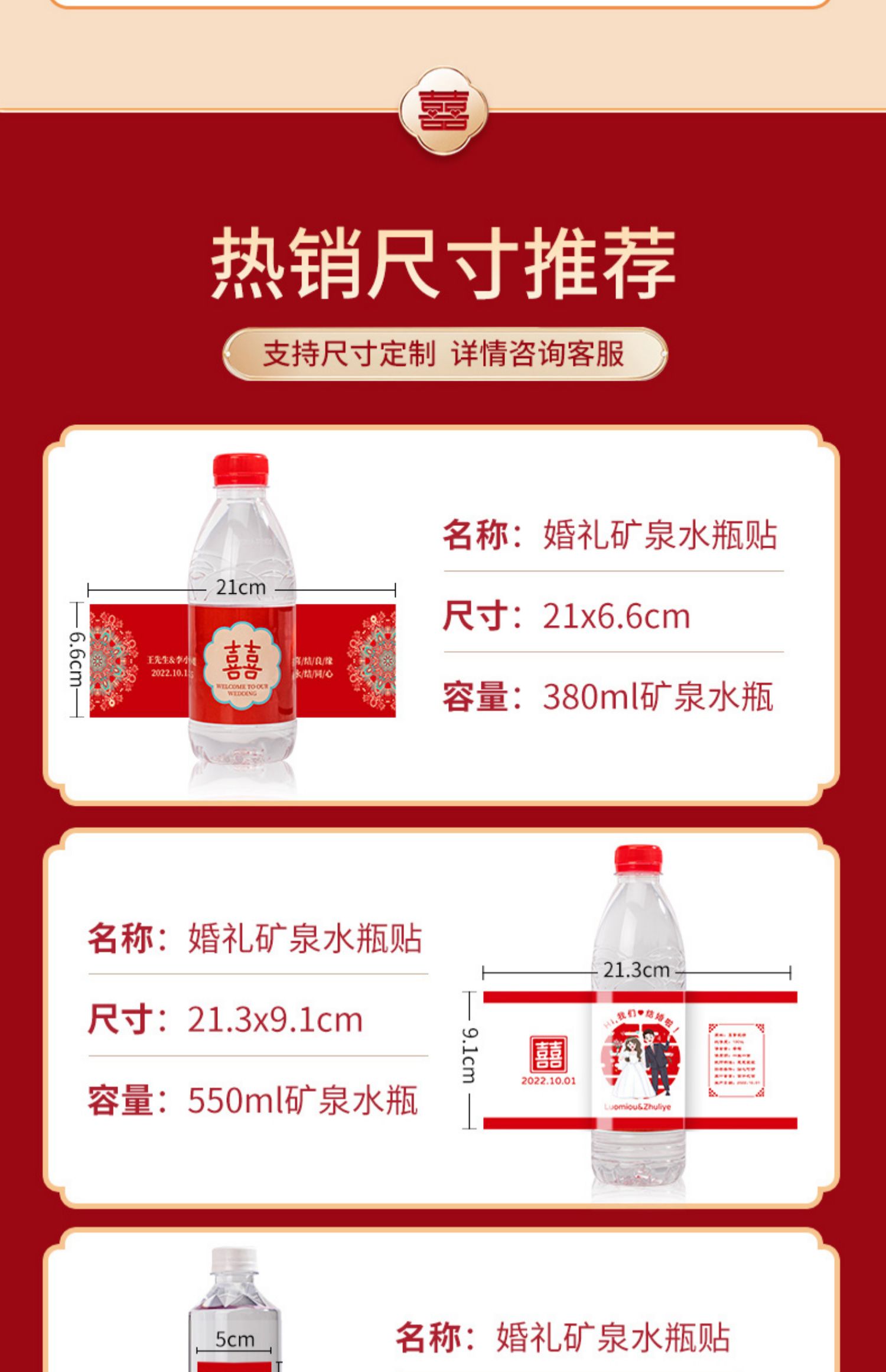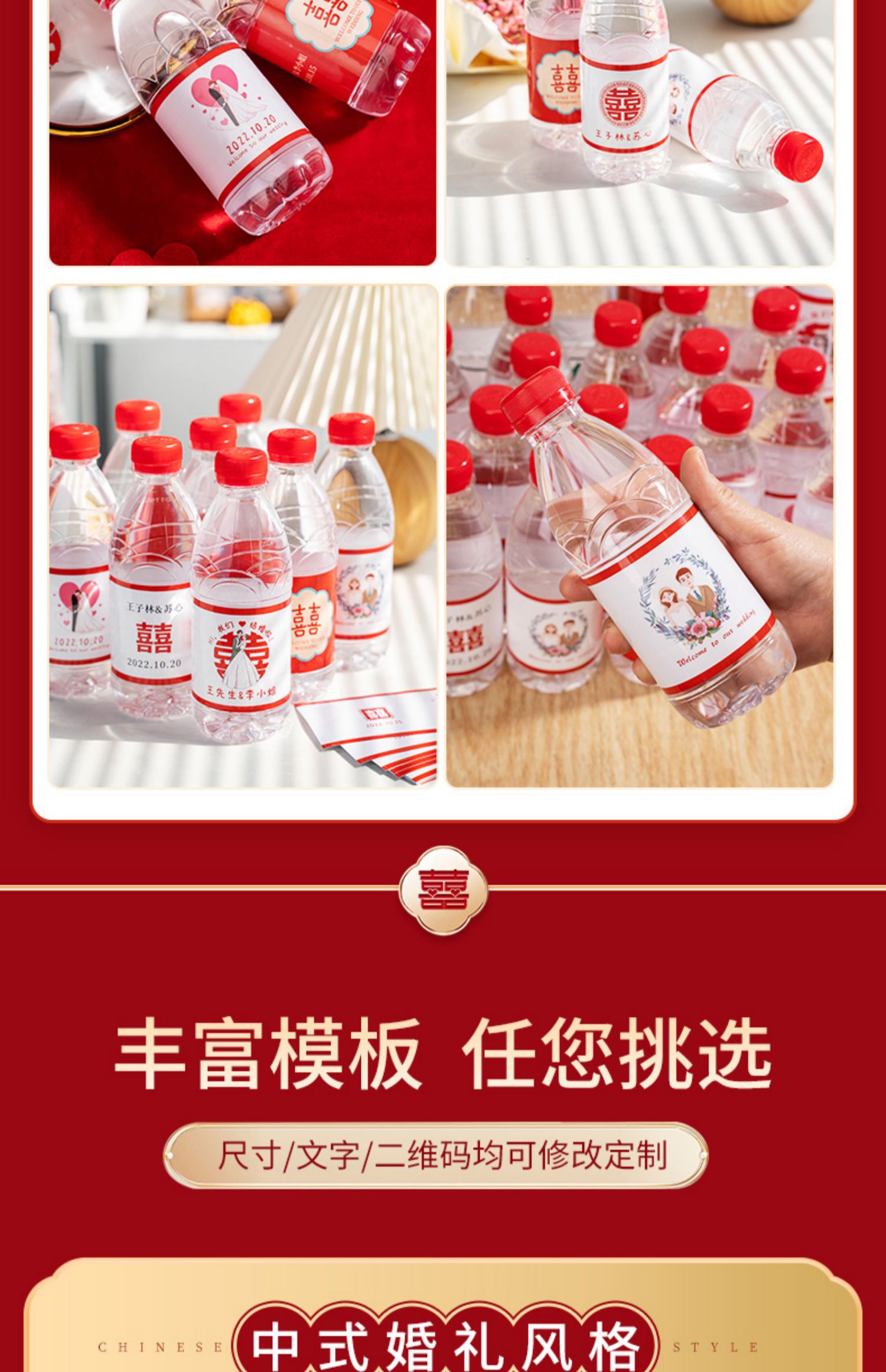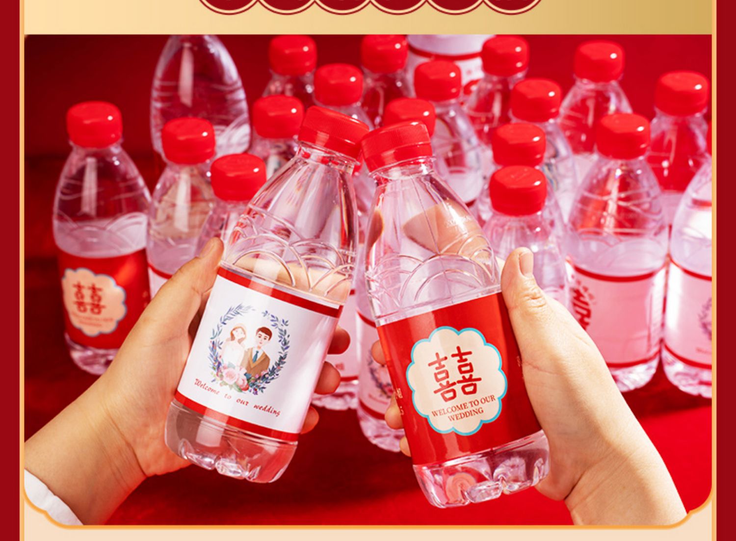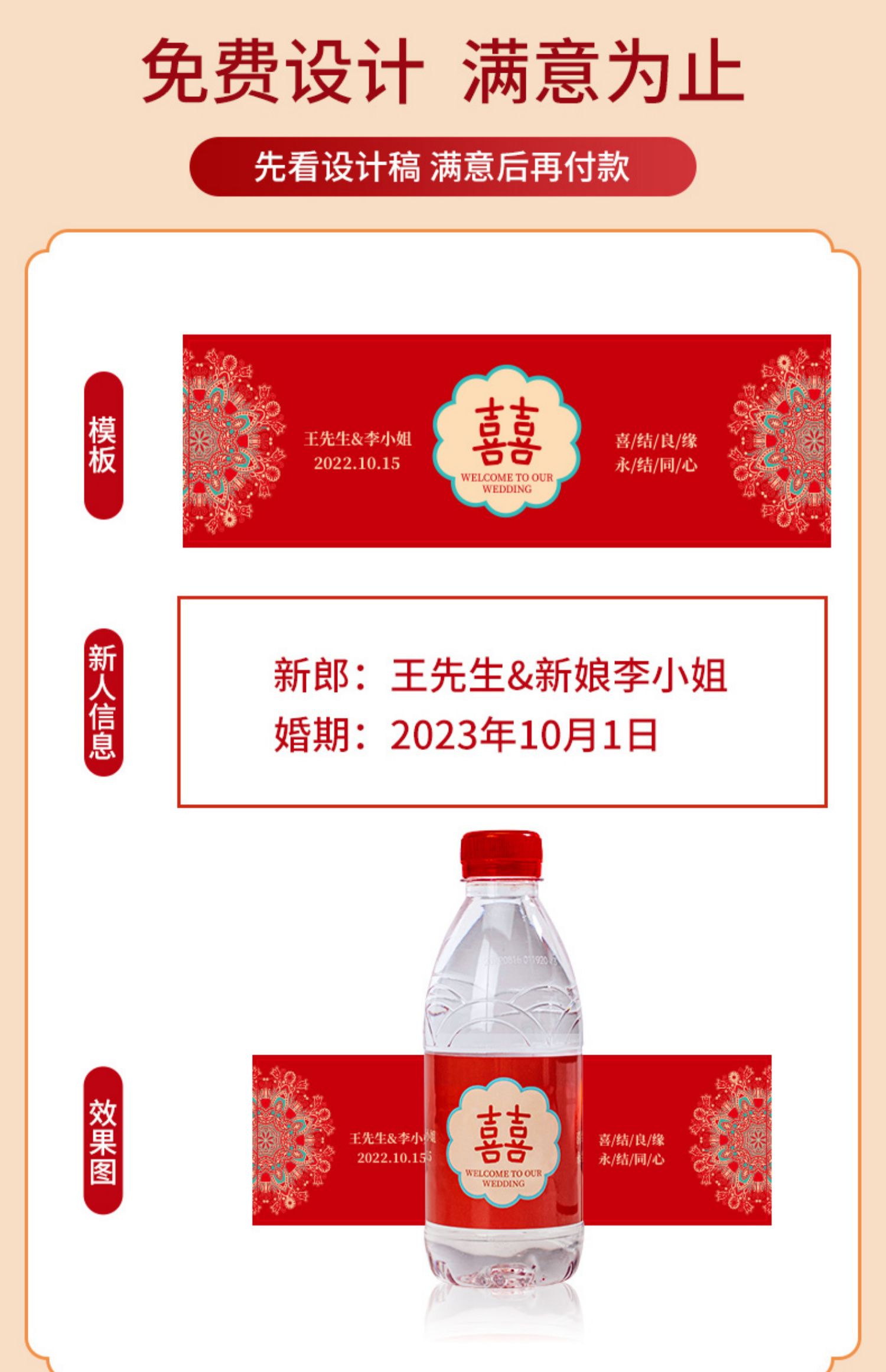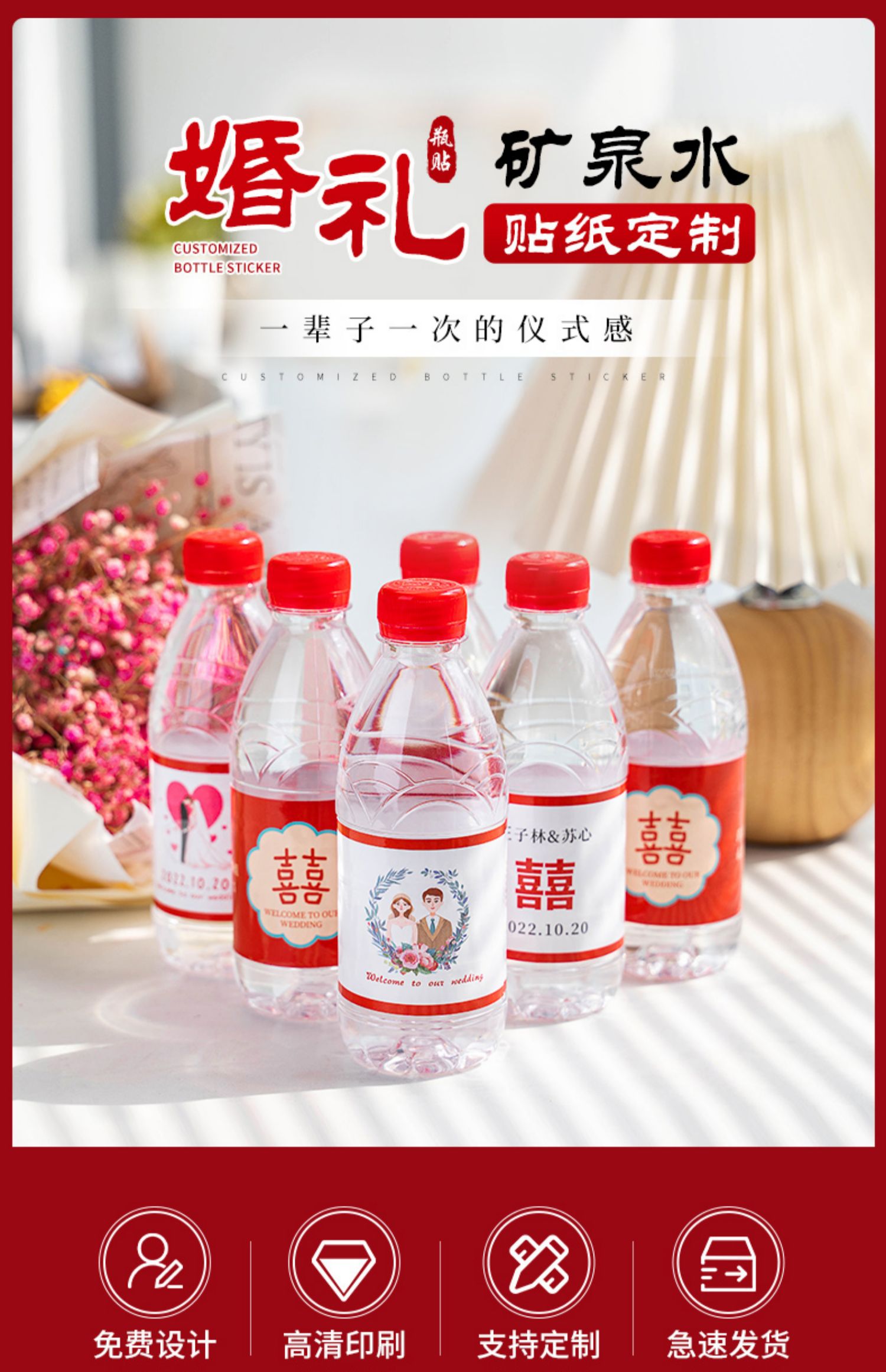 矿泉水瓶贴结婚logo贴纸标签定制婚礼订婚宴喜字贴设计不干胶定做