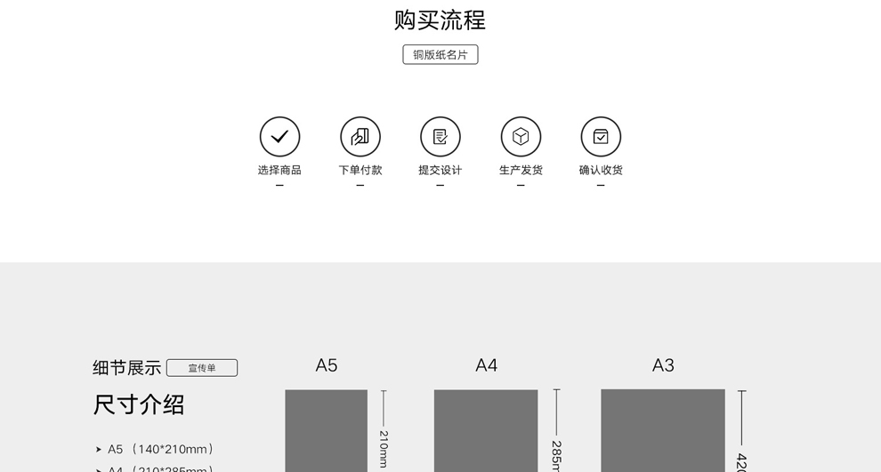 印刷品:选择需要的产品规格和制作方式,下单后在订单列表进入设计器完成设计提交