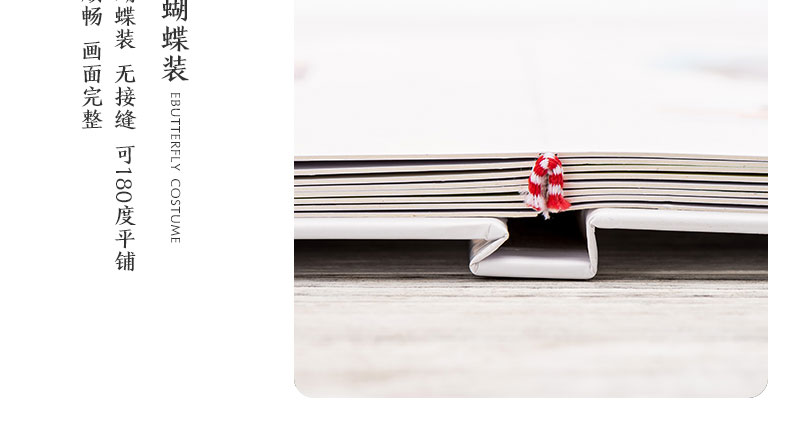 照片书除了蝴蝶装以外,都是不能180度展开的。翻阅请一定不要用力拉扯,以免造成开胶掉页。